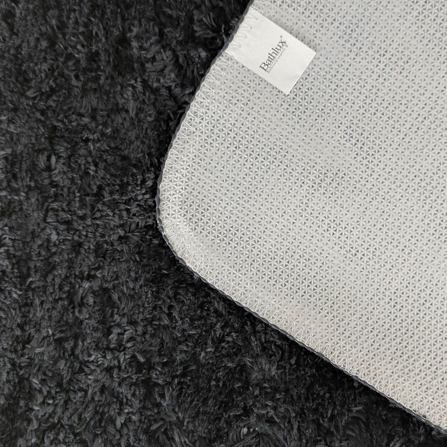 La alfombra de baño Bathlux está fabricada en microfibra, un material muy suave y absorbente, con una textura que brinda una sensación agradable bajo los pies. Cuenta con base antideslizante de goma para mayor seguridad. Su color negro aporta un estilo moderno y elegante, sumando carácter al ambiente.