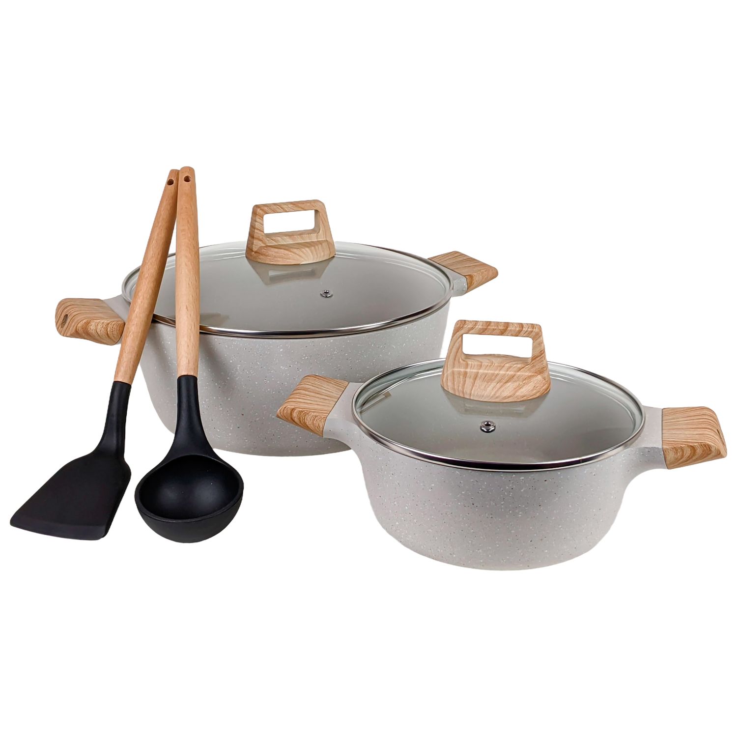 Batería De Cocina Antiadherente Honhey 10 Piezas – Granito Crema