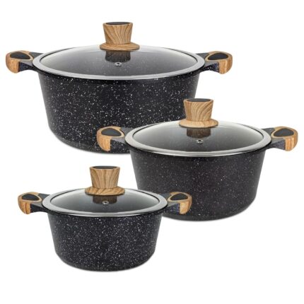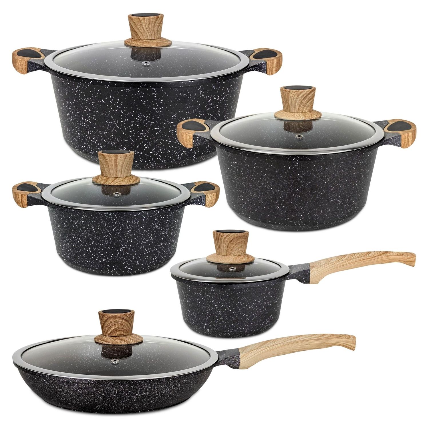 Batería De Cocina Antiadherente Honhey 10 Piezas – Granito Negro