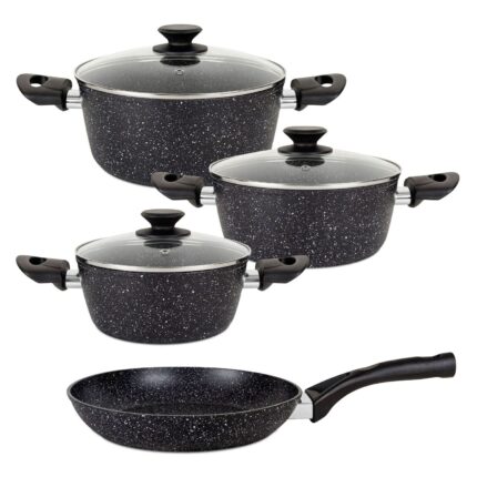 Batería De Cocina Baroly 7 Piezas, Aluminio Forjado – Granito Negro