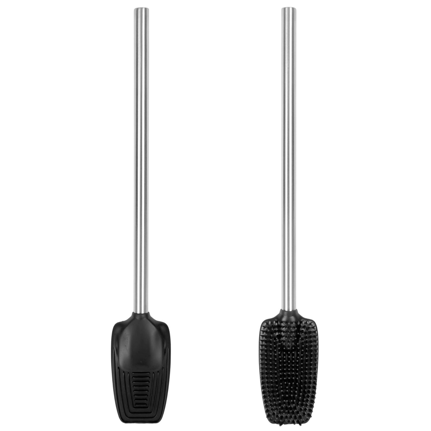 Cepillo de inodoro con cabezal flexible de silicona, más higiénico y eficiente en la limpieza. Diseño moderno y resistente en acero inoxidable.
