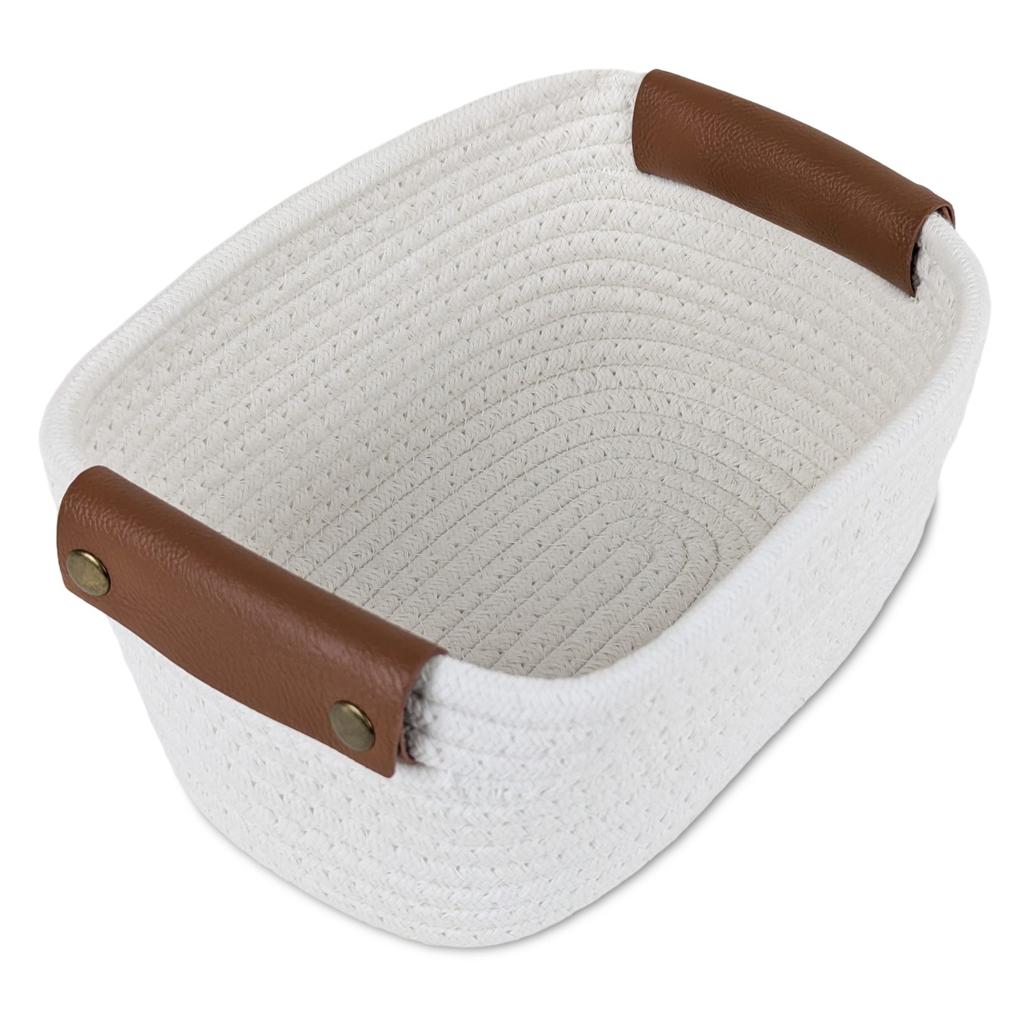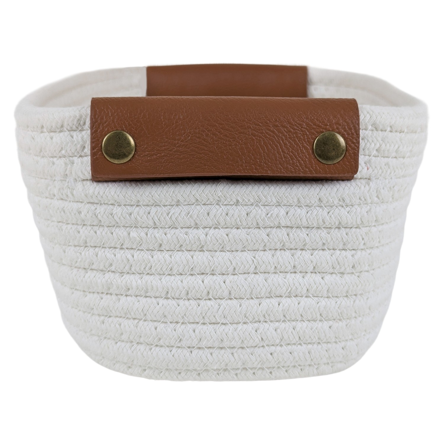 Cesto De Tela Blanco, Con Asas Marrones – 24x17cm
