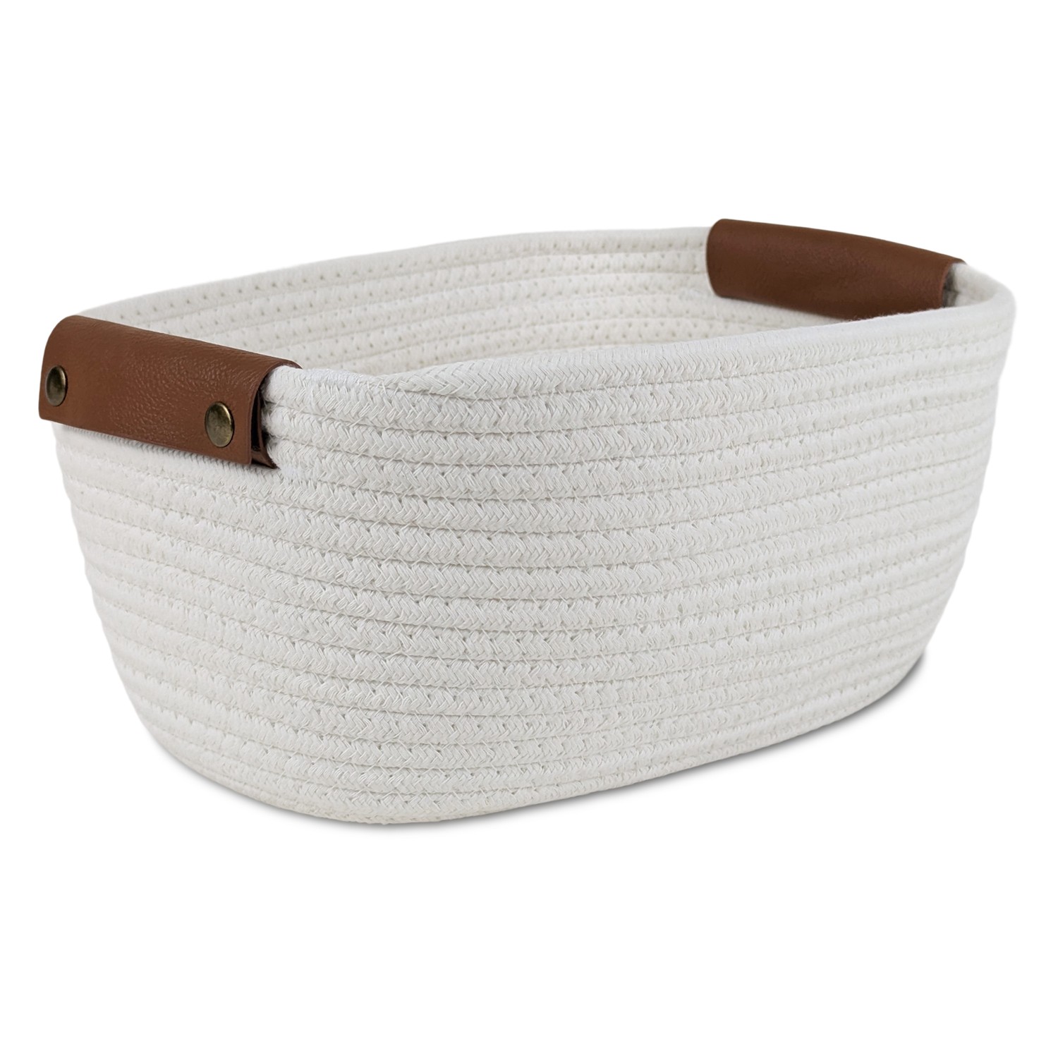 Cesto De Tela Blanco, Con Asas Marrones – 31x21cm