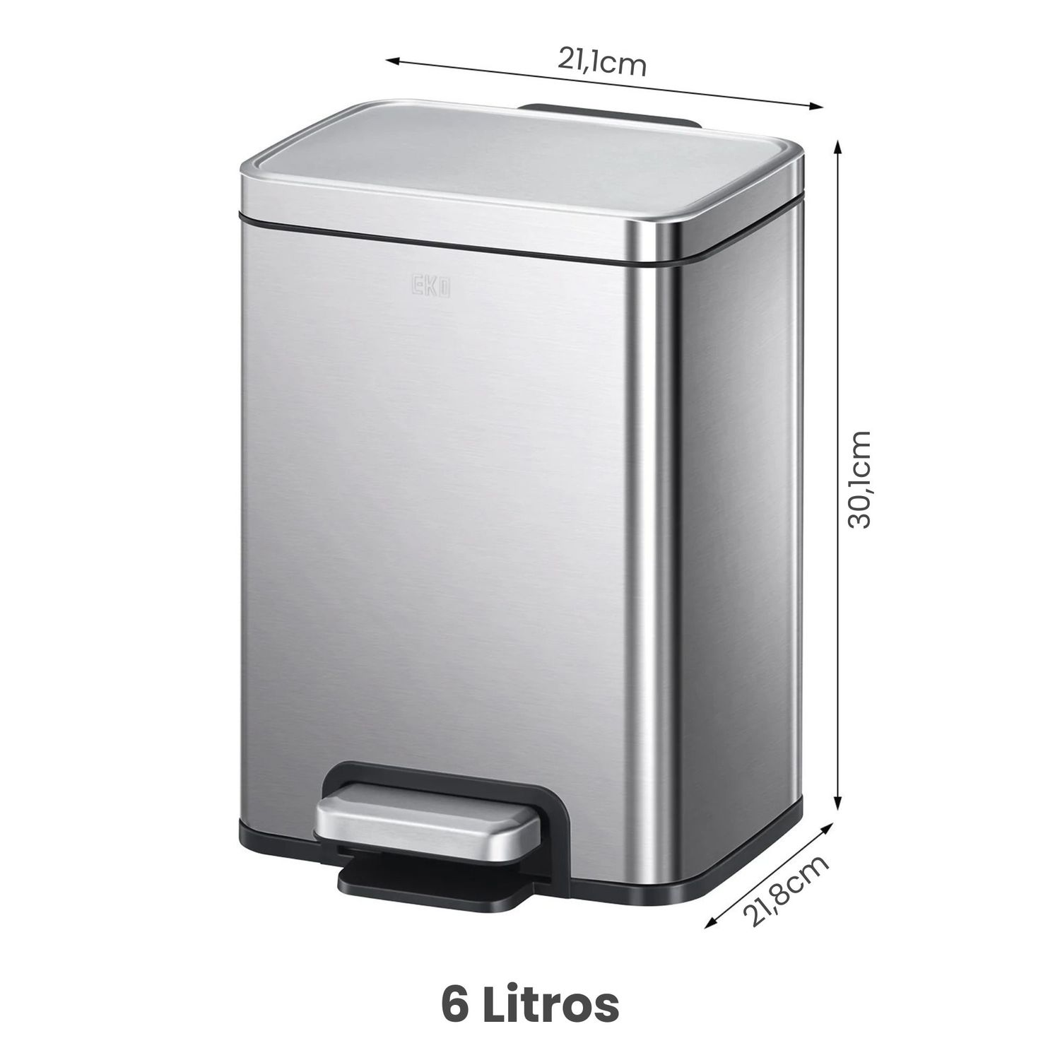 Papelera Premium Eko Madison Rectangular 6L – Pedal, Acero Inoxidable
