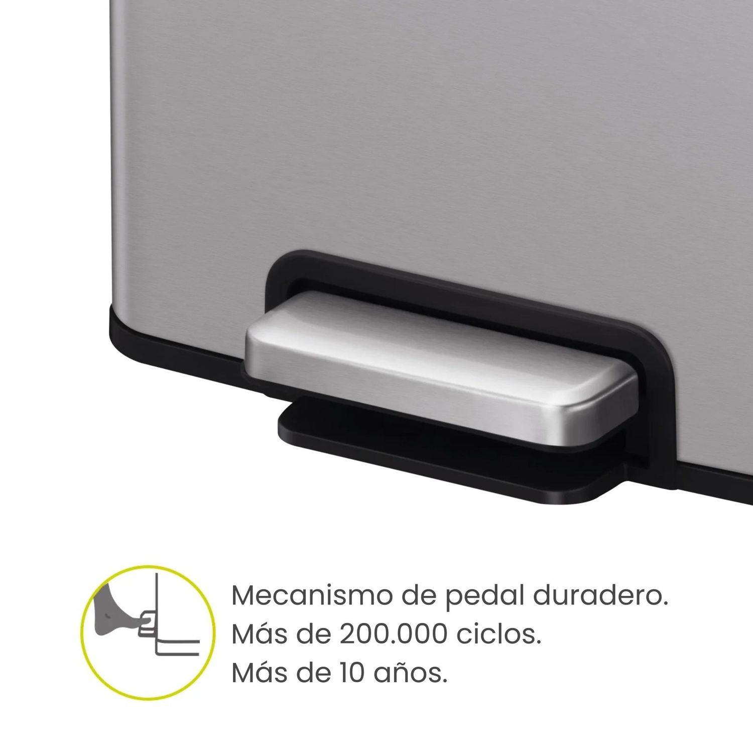• Mecanismo de pedal duradero, probado para más de 200.000 ciclos y una vida útil de más de 10 años.