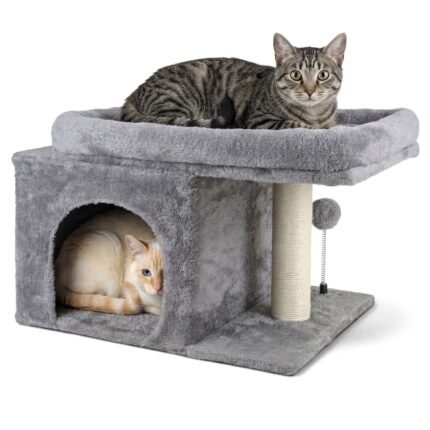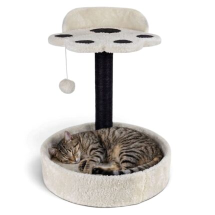 • Plataforma superior: La parte superior plana es una plataforma de descanso forrada que proporciona un lugar cálido y elevado, perfecto para que tu gato vigile su territorio o se eche una siesta.