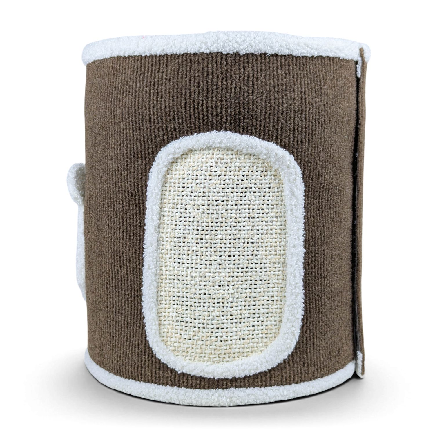 Ofrece a tu felino un lugar de entretenimiento y comodidad con este rascador multifuncional en forma de cilindro. Diseñado pensando en las necesidades instintivas de tu gato, este versátil accesorio combina una gran superficie de rascado, un acogedor refugio y una plataforma de descanso superior en un solo diseño compacto y adorable.