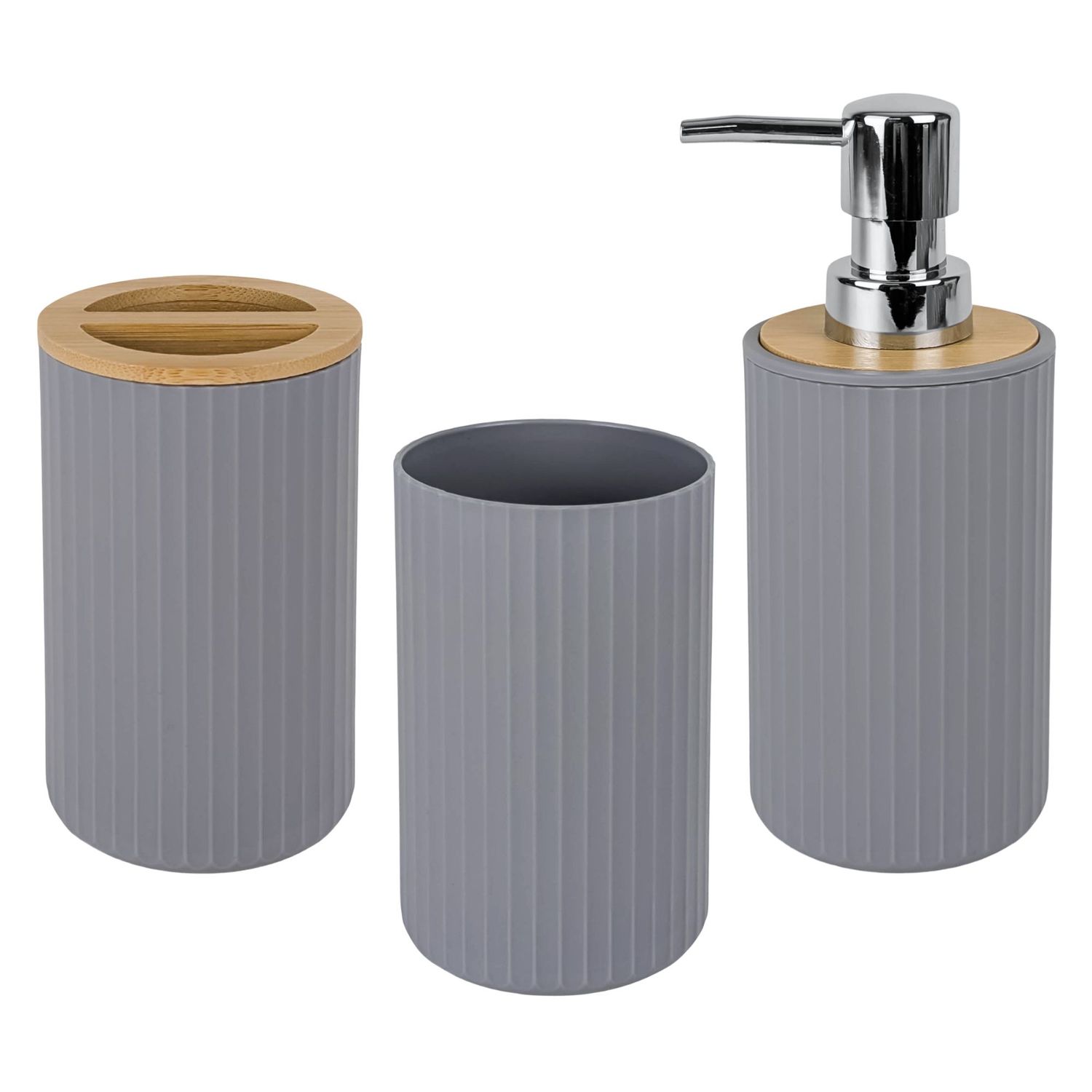 Set De 6 Accesorios P/Baño Bathlux – Diseño Circular – Plástico Y Bambú