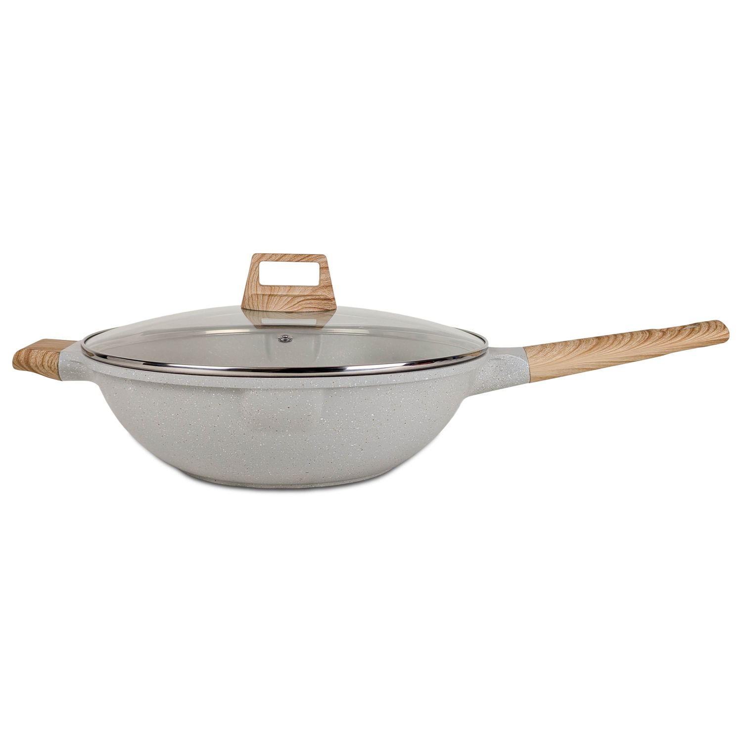Wok Antiadherente Honhey 32cm C/Tapa – Granito Crema