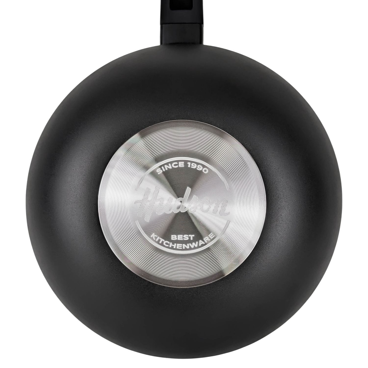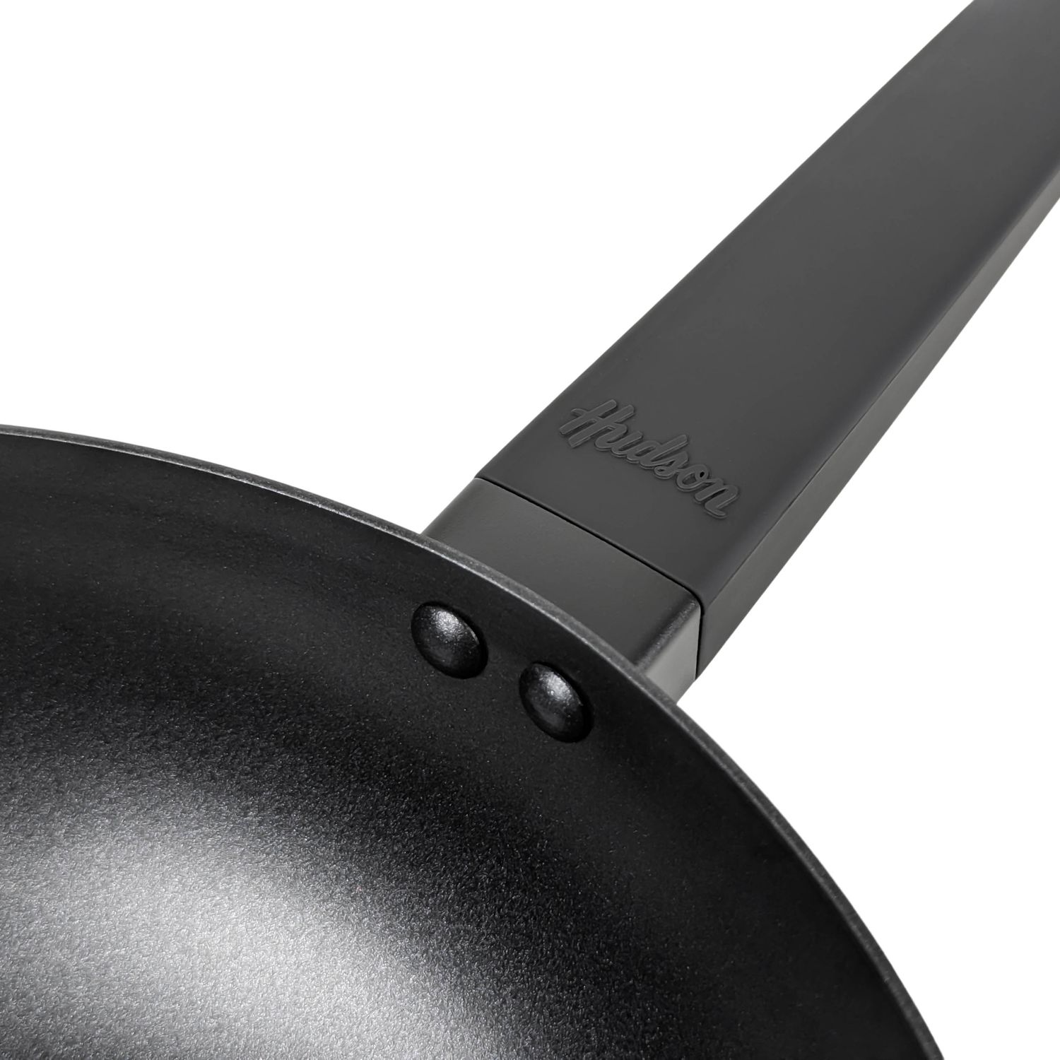 La línea Daily de Hudson destaca por su hermoso diseño de acabado negro mate. Este wok con cuerpo de aluminio, cuenta un recubrimiento antiadherente de dos capas que facilita la limpieza y evita que los alimentos se peguen.
